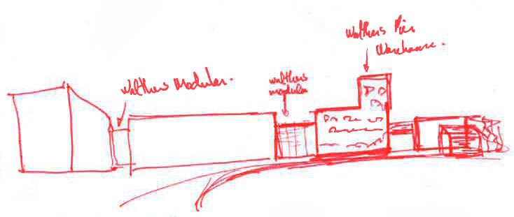 We also mockuped the mill scene with roads and buildings. Crossing gates, like the prototype, were added too. Looks OK, but I think the offices won't be modelled near the background. They break the scene, making it cluttered. The gate shed (Atlas shanty) will be moved over the tracks. The final building will look nothing like this one.