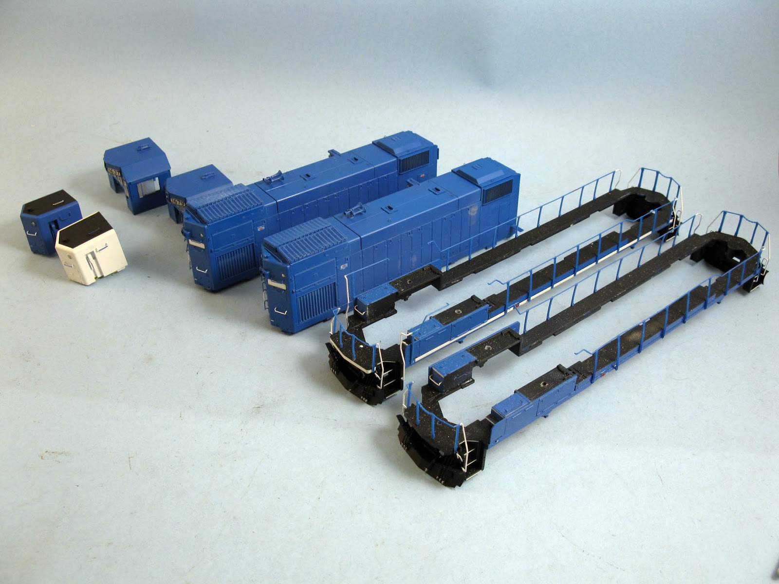 Otherwise, the locomotives are in the paint shop and relettering should happen in a matter of days. Rock lights on both ends will be added later when I'll get them.